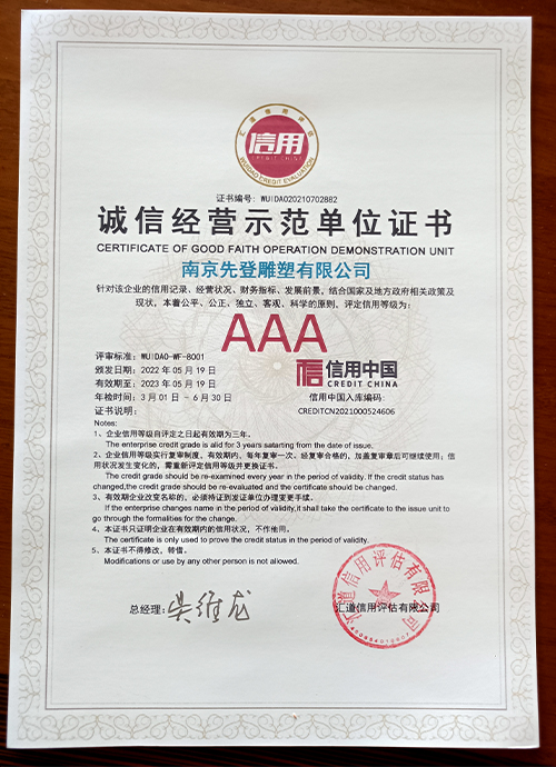 誠信經營示范單位證書