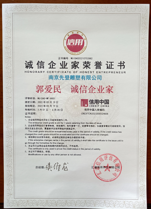 誠信企業家榮譽證書