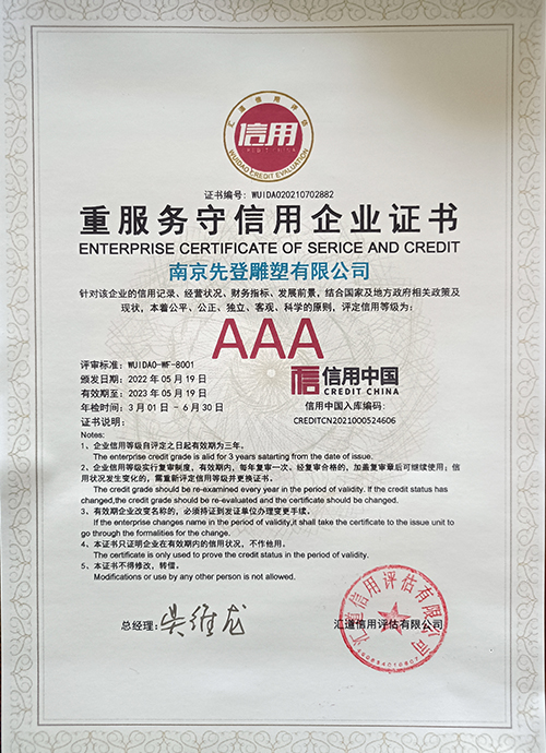 重服務守信用企業證書