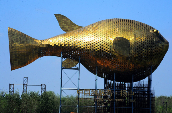 近日,江蘇揚(yáng)中一座"河豚"巨型雕塑成為網(wǎng)絡(luò)熱議話題。這條金光燦燦,搖頭擺尾的"河豚",黃銅披身,是揚(yáng)中市的新地標(biāo),也是9 月27日開幕的第八屆江蘇省園博會(huì)的重要標(biāo)志。僅就其本身的設(shè)計(jì)而言,足以引人注目乃至贊嘆。然而,不同的聲音在于,傾注7000萬(wàn) 元巨資興建這樣一個(gè)地標(biāo),真的值嗎?有網(wǎng)友直言,在中央八項(xiàng)規(guī)定、厲行節(jié)約等要求和精神下,與"面子工程"相比,民生實(shí)事才更加 緊迫。