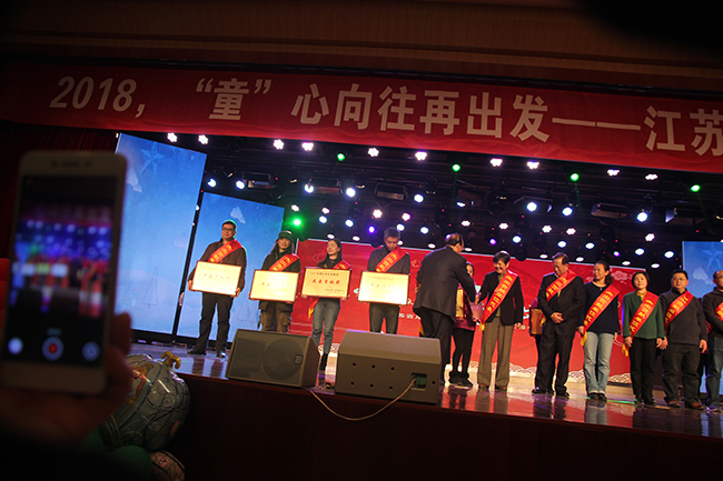 2018年2月8日在江蘇省兒童基金會主持召開的——2018.童心向往再出發主題匯報會上,南京先登雕塑榮獲“杰出貢獻獎”,南京先登雕塑藝術總監郭愛軍受邀出席并領取了證書。