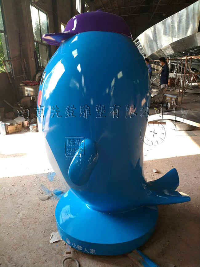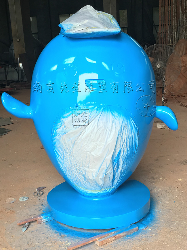 南京玻璃鋼大藍鯨彩繪雕塑噴漆中