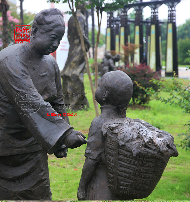 雕塑寓意:老街上賣燒餅的老夫妻已經(jīng)在這里擺攤賣餅許多年了,這些年一直都是價廉物美。遇見無錢買餅的小孩就送他一塊。